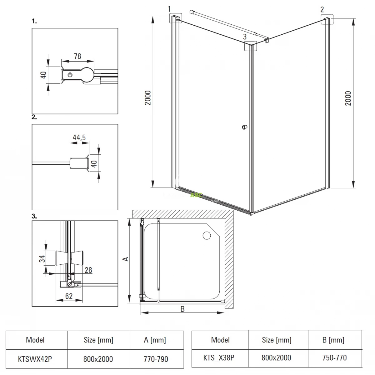 | Wariant | Ścianka 90cm + drzwi 80cm |