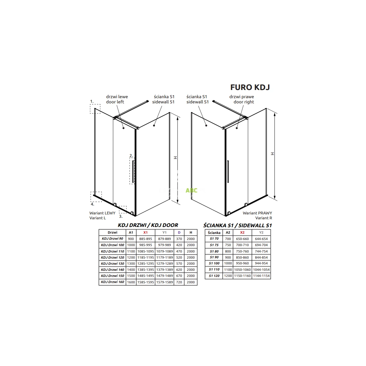 Uwaga! Wymiar kabiny dopasowany jest do montażu na brodziku o standardowym rozmiarze. W rzeczywistości kabina jest mniejsza. Jeśli planujesz montaż kabiny bezpośrednio na posadzce, zwróć uwagę na wymiary do osi szyby (Y1, Y2), które podane są na rysunku technicznym.