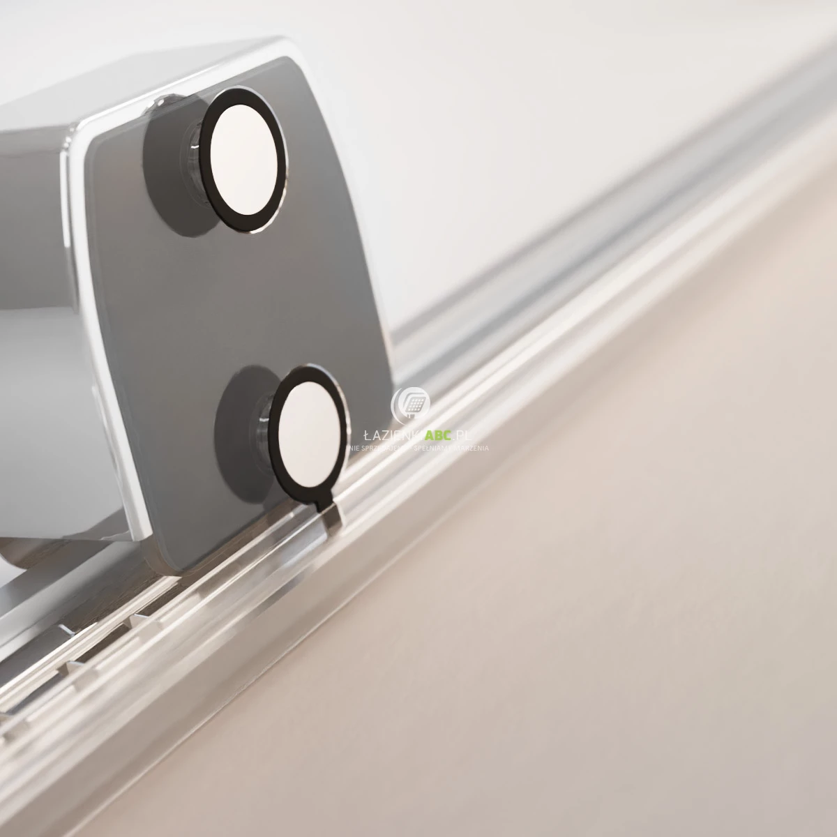 Kabina prysznicowa wyposażona jest w uchwyt stabilizujący z innowacyjnym systemem, który spowalnia bieg drzwi.