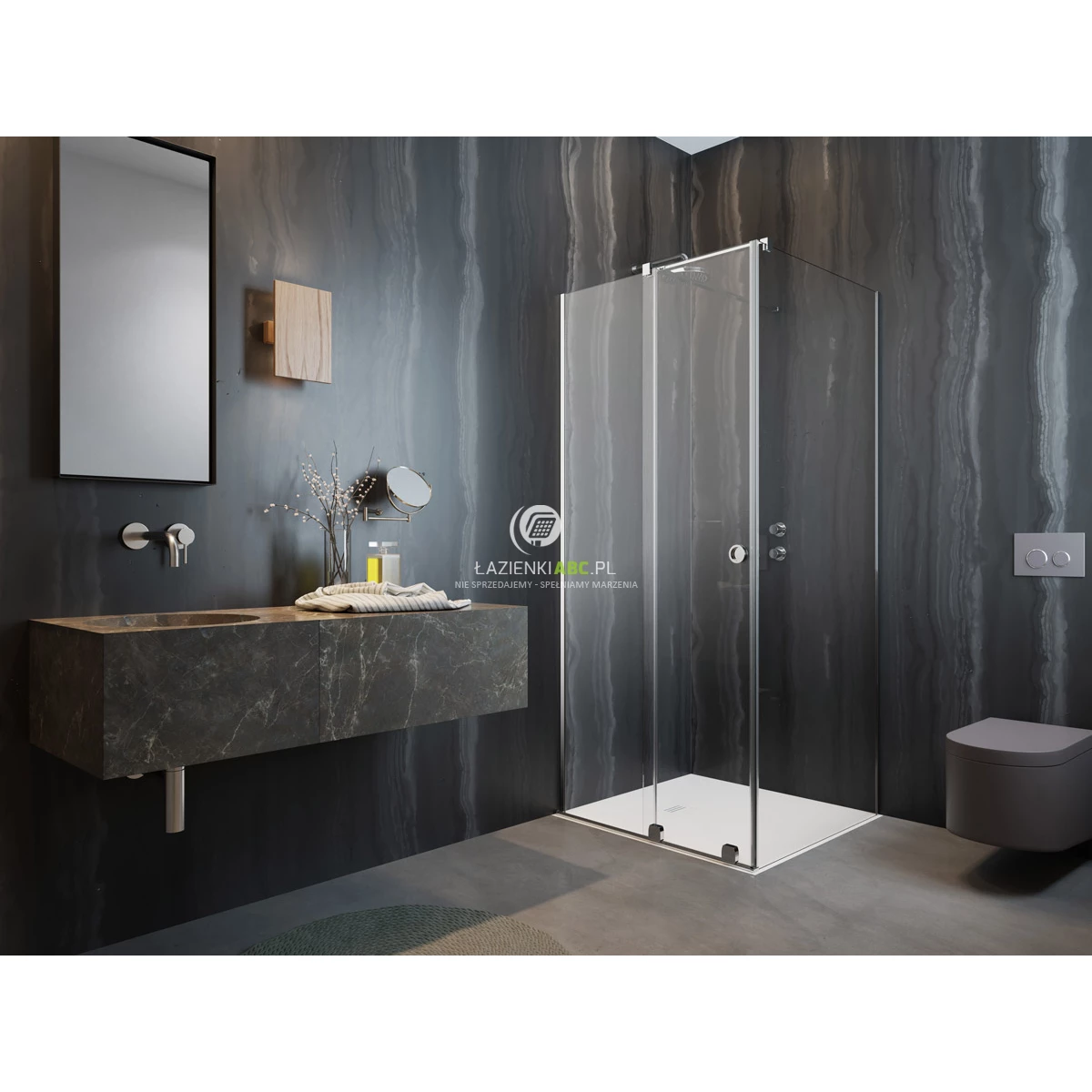Do kabiny MODO NEW IV marki Radaway istnieje możliwość dokupienia nieruchomej ścianki bocznej o szerokości 300 mm. Taka ścianka występuje w dwóch wariantach kolorystycznych: chrom - 388000-01-01 oraz czarny - 388000-54-01.