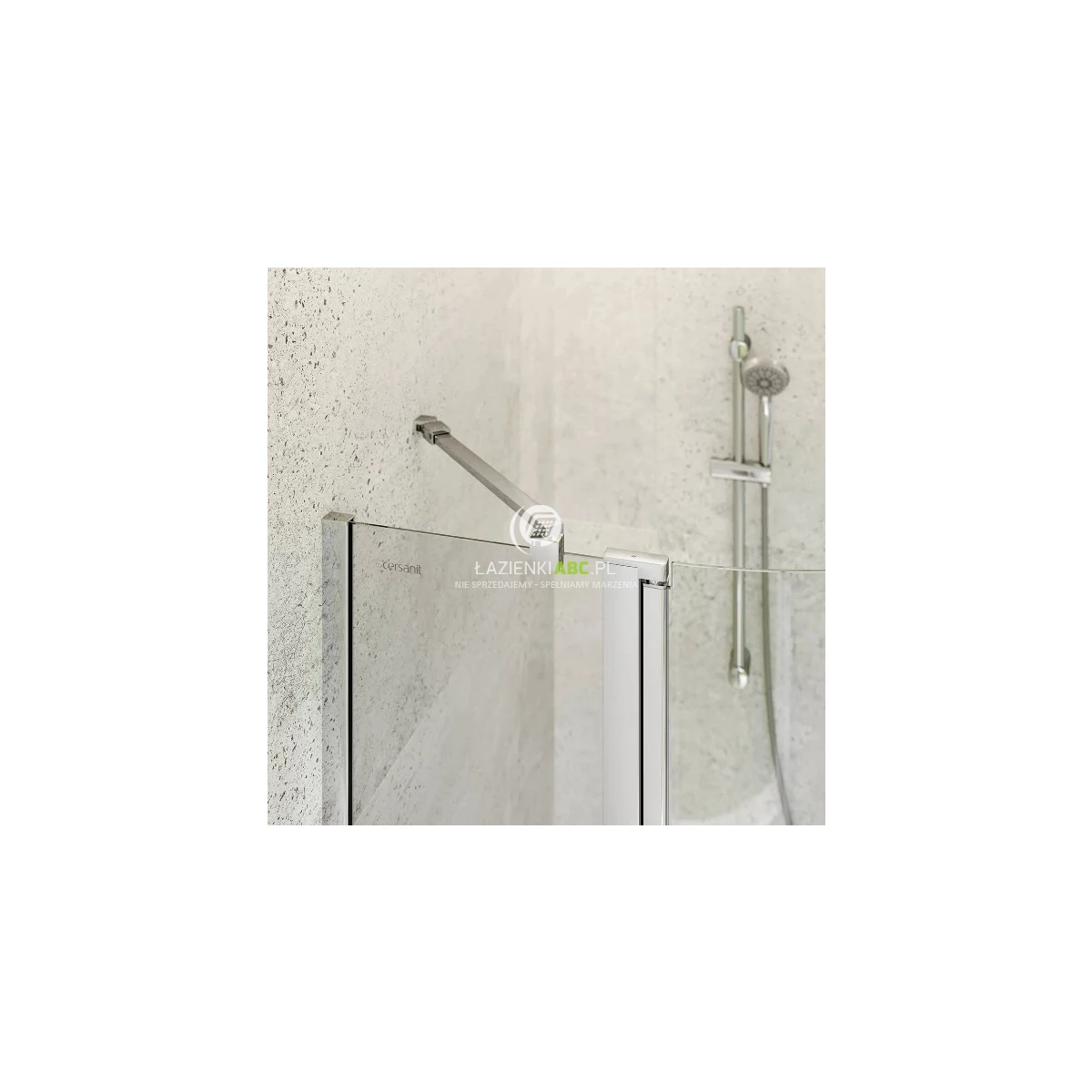 Boczna szyba kabiny półokragłej Cersanit MODUO połączona jest ze ścianą za pomoca metalowego wspornika. Gwarantuje on stabilność kabiny półokrągłej.