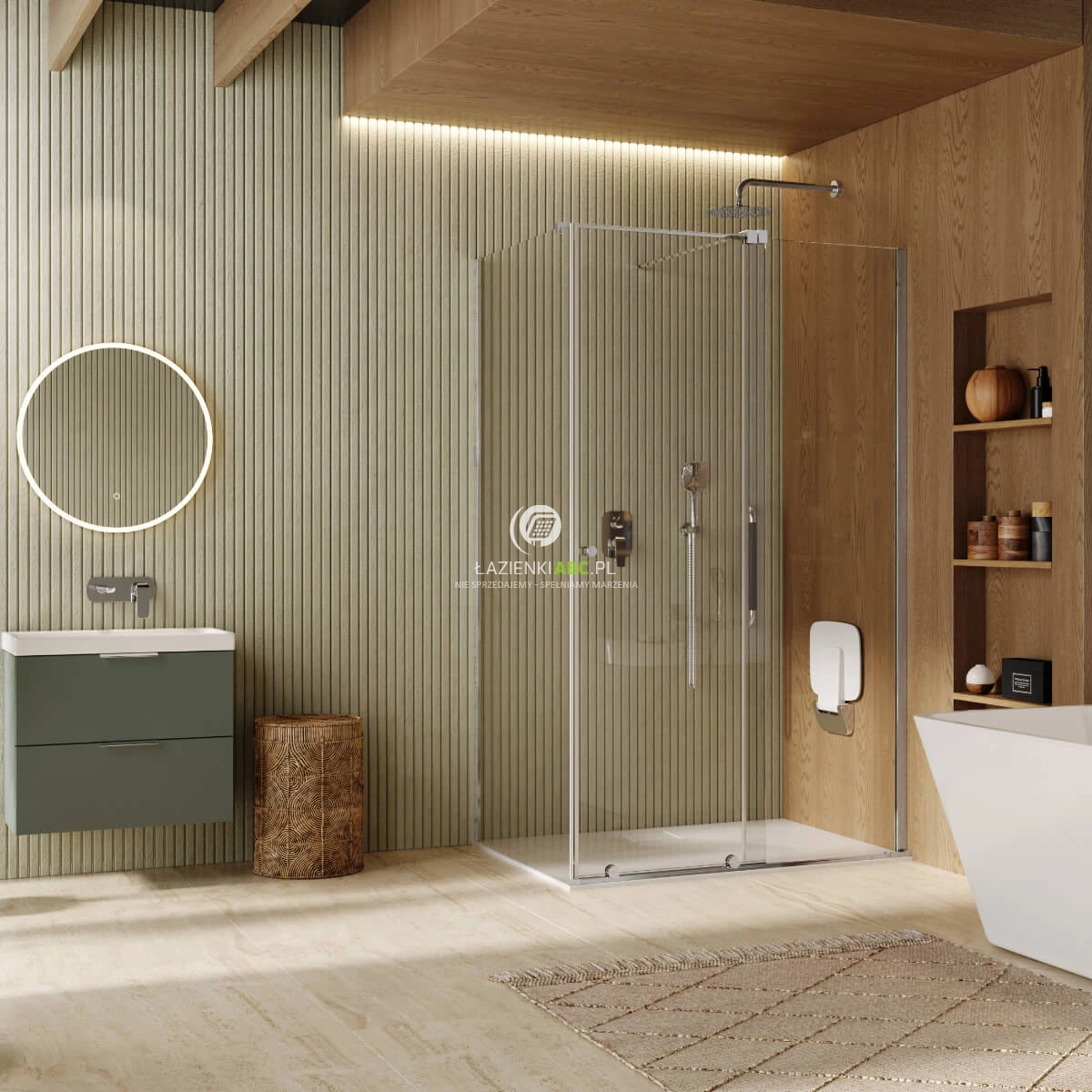 Wspornik stabilizujący drzwi przesuwne i mocujący ściankę stałą wyposażony jest w otwierany haczyk, na którym można zawiesić ręcznik lub szlafrok. Ten praktyczny element zwiększa funkcjonalność kabiny prysznicowej. Dzięki niemu codzienne korzystanie z łazienki staje się wygodniejsze i bardziej komfortowe.