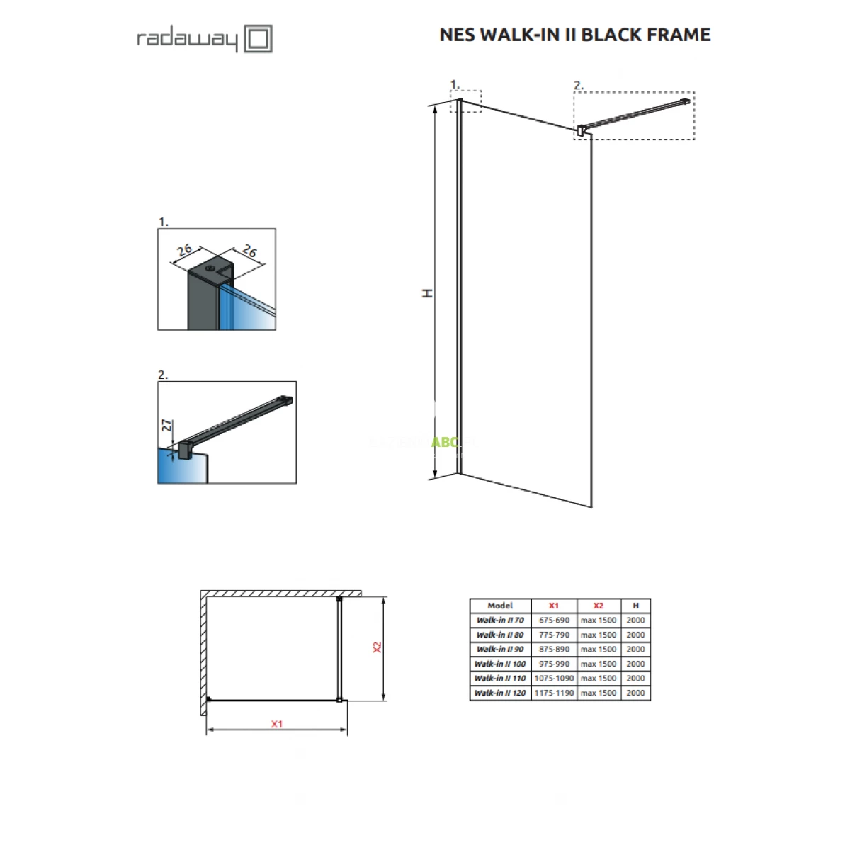 | Typ drzwi | Walk in (brak drzwi) |