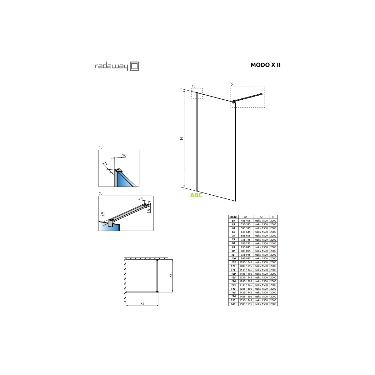 Uwaga! Wymiar kabiny dopasowany jest do montażu na brodziku o standardowym rozmiarze. W rzeczywistości kabina jest mniejsza. Jeśli planujesz montaż kabiny bezpośrednio na posadzce, zwróć uwagę na wymiary do osi szyby (Y1, Y2).