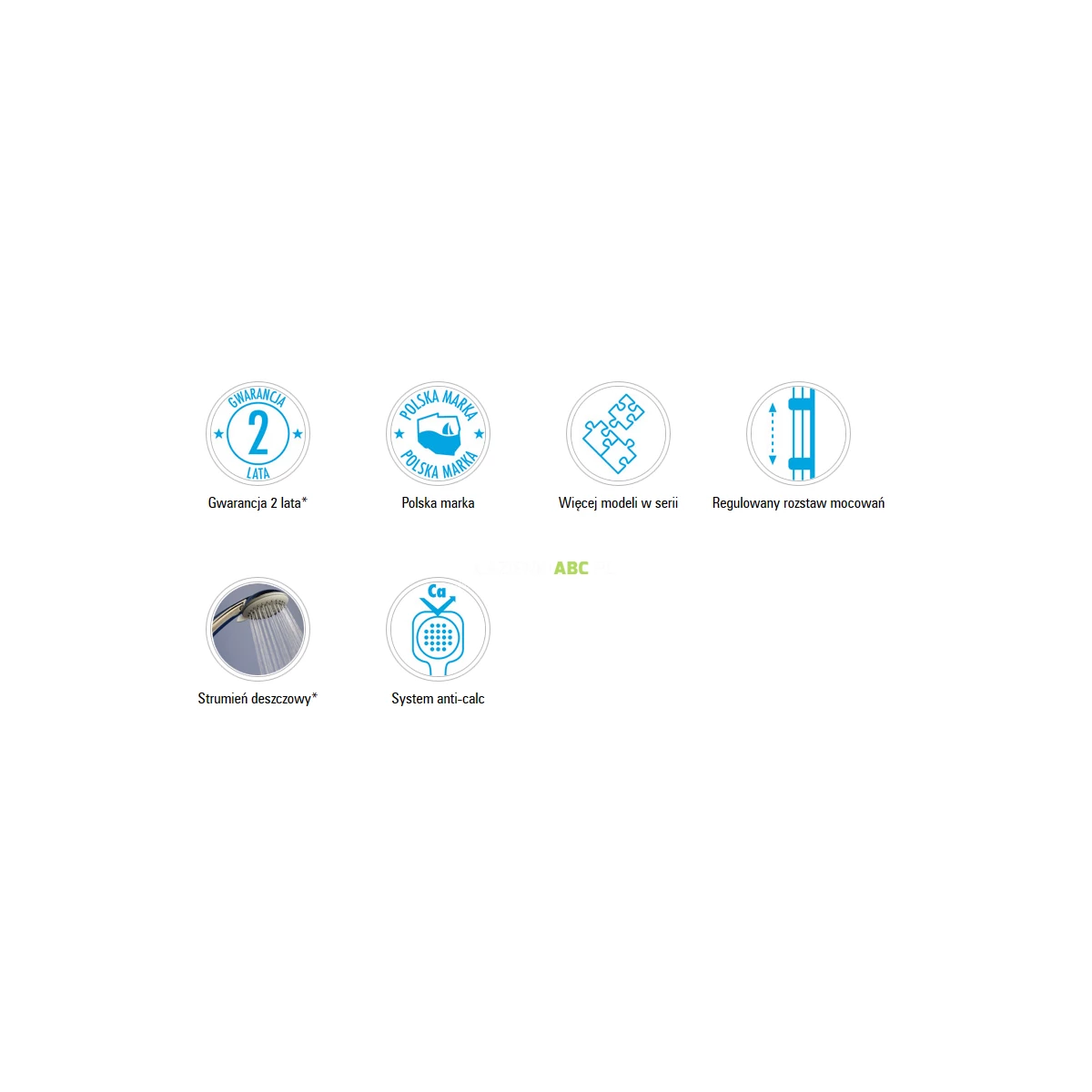 Dysze wykonane z silikonu pozwalają na ograniczenie osadzaniu się kamienia, dzięki czemu przedłużają trwałość i niezawodność działania słuchawek i głowic natryskowych Deante. Czyszczenie elementów wyposażonych w system anticalc jest wyjątkowo proste i szybkie – wystarczy przetarcie ręką.