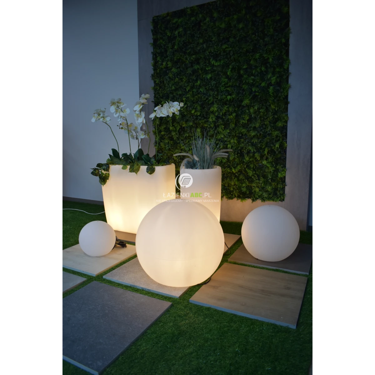 Kolekcja lamp ogrodowych podświetlanych, to propozycja dla osób, które szukają pomysłu na oświetlenie ogrodu i przestrzeni wokół domu. W skład lini lamp wchodzą trzy białe kule o różnych wymiarach, lampy kwadratowe o zróżnicowanych kształtach. Produkty podświetlane posiadaja stopień ochrony IP 65 i IP 44, a więc są dobrze chronione przed czynnikami zewnetrznymi, pyłami czy wilgocią. Warto podkreślić, że lampy podświetlane z uwagi na jasną kolorystykę i prosty kształt będą stanowiły ciekawy element dekoracji ogrodu w dzień jak i po zmroku.
