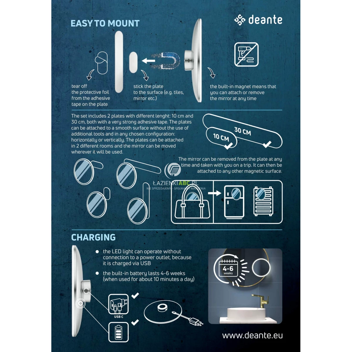 Lusterko kosmetyczne magnetyczne LED Deante ROUND ADR 0821 wyprzedaż
