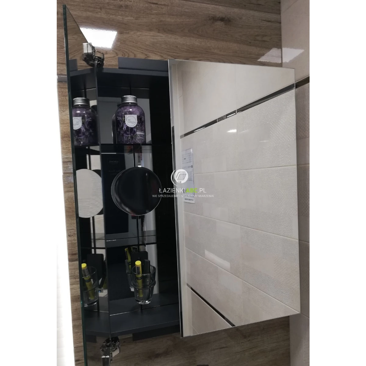 Proste i oszczędne z zewnątrz szafki lustrzane NEO zachwycają swoim wnętrzem. Pozostało tylko niezbędne minimum występujących w środku elementów i detali, a te, które zostały - uderzają szlachetnością materiałów i starannością wykonania. W połączeniu z dodatkowymi, dedykowanymi akcesoriami stają się funkcjonalne i nie mają porównania w rozwiązaniach występujących na rynku. Całości wrażenia dopełnia ciemny dekor hartowanego szkła, który został użyty na półki.