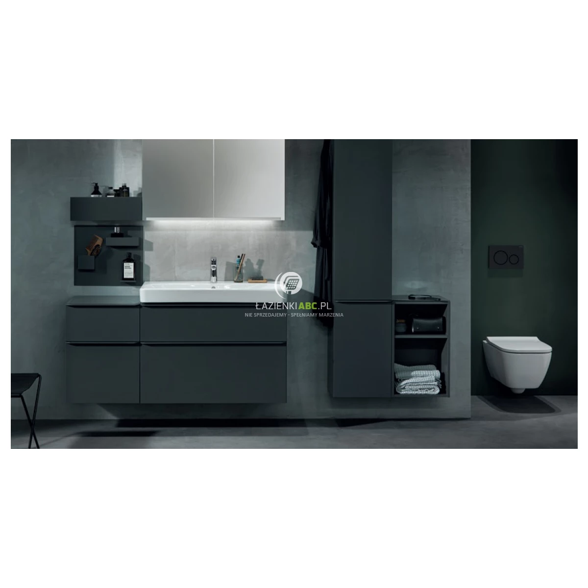 Seria Geberit Smyle to kwintesencja nowoczesnego designu w łazience, łącząca elegancję z funkcjonalnością. Toalety z tej serii charakteryzują się minimalistycznym stylem i innowacyjnymi rozwiązaniami, zapewniając komfort i oszczędność wody. Umywalki Smyle prezentują harmonijne proporcje i czyste linie, podkreślając nowoczesność wnętrza, a meble łazienkowe oferują nie tylko estetykę, lecz także praktyczne rozwiązania do przechowywania, doskonale wpisujące się w koncepcję funkcjonalnej elegancji.