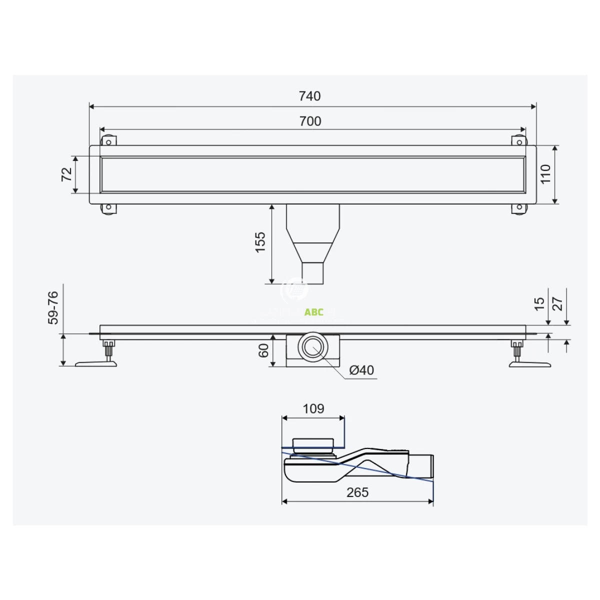 | Typ | Odpływ liniowy + maskownica |