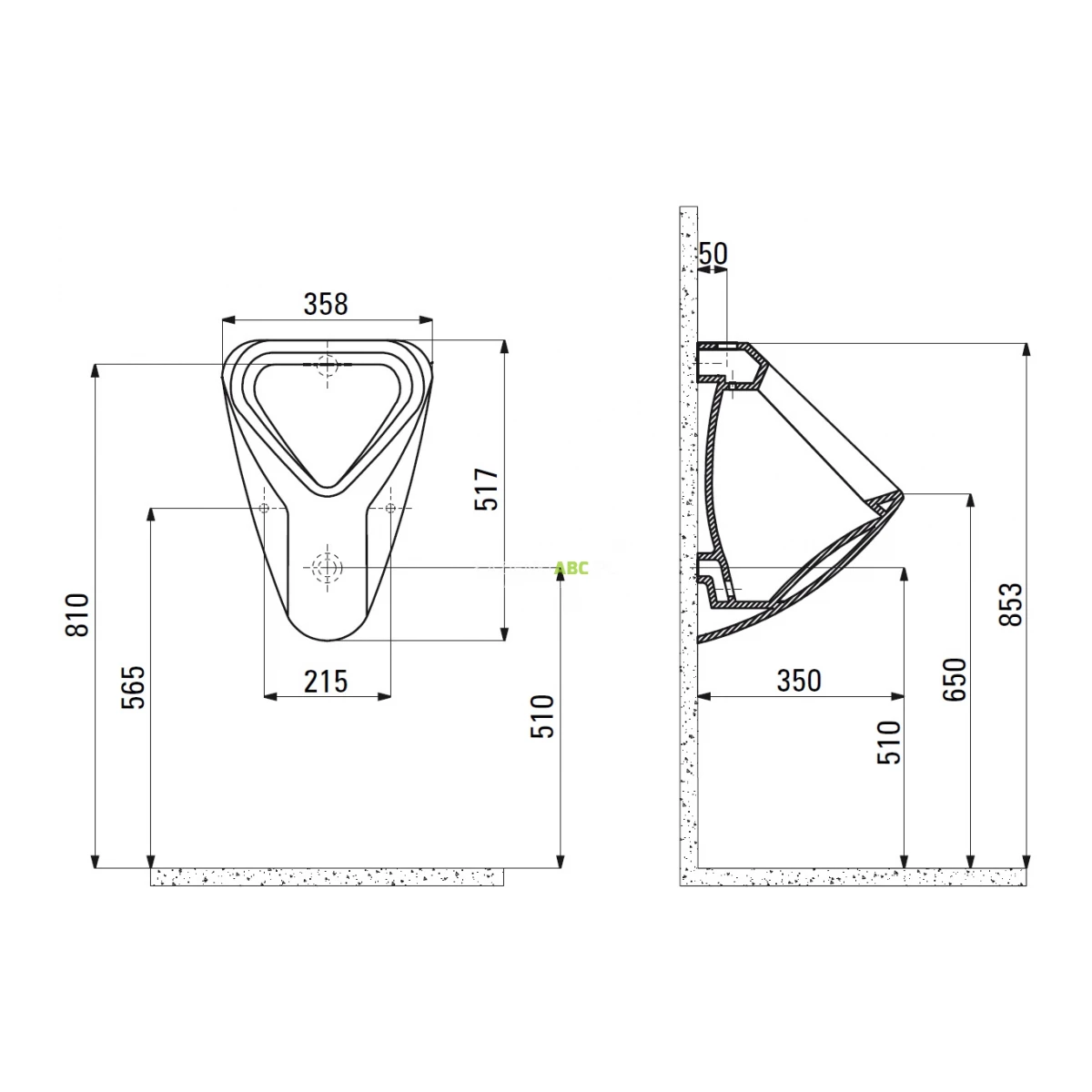 Pisuar 34x52 Deante PEONIA CDE 6P3W podłączenie u góry
