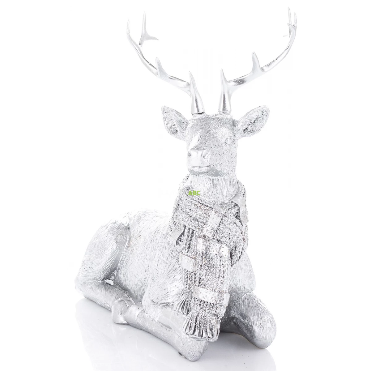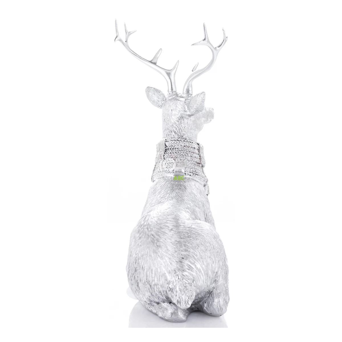 Siedzący jeleń srebrny figurka 19,5cm Casa Roma 172076