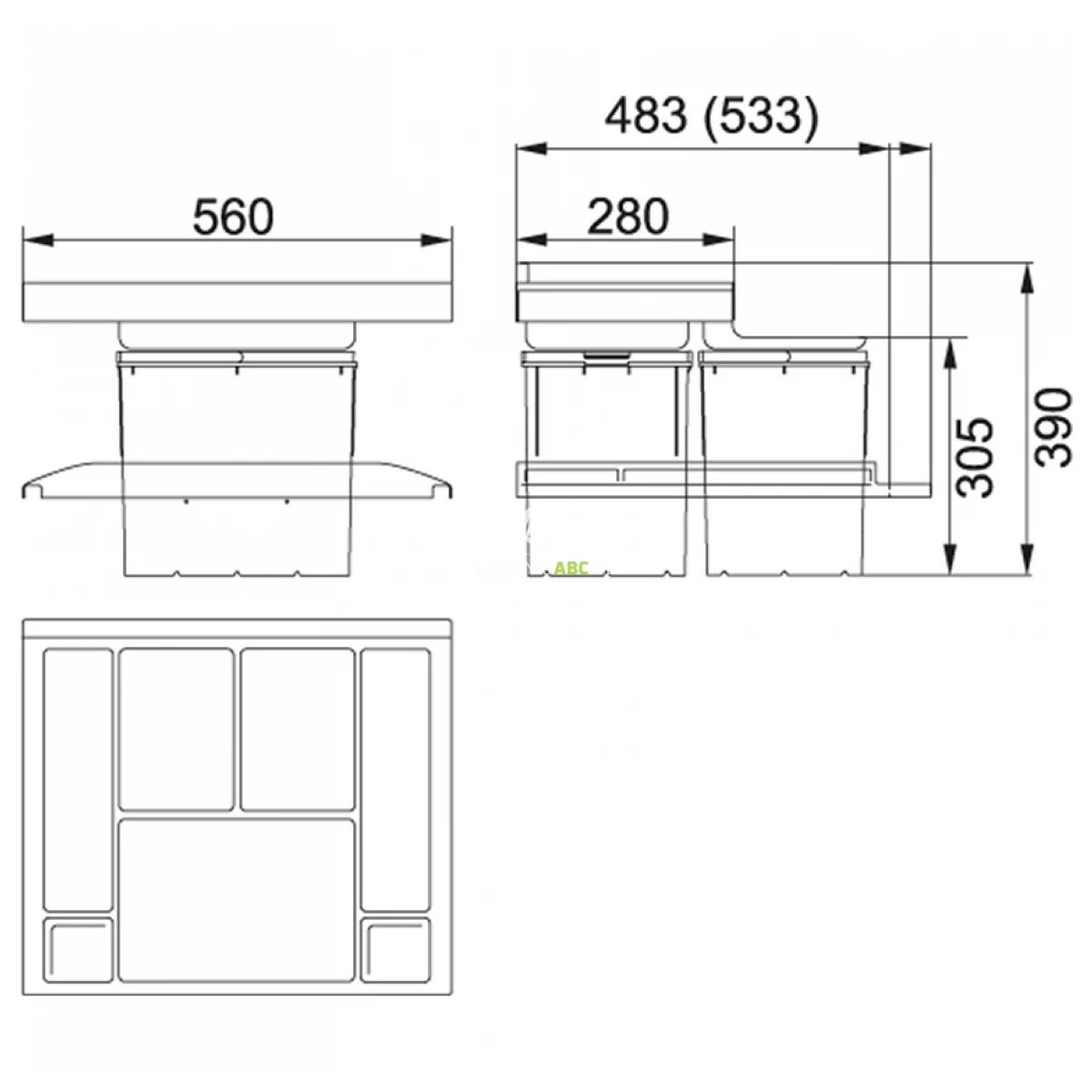 Sortownik do odpadów 34 l trzykomorowy, wysuwanie z frontem, do szafki o minimalnej szerokości 60 cm Franke TROLLEY VARIO 134.0066.057