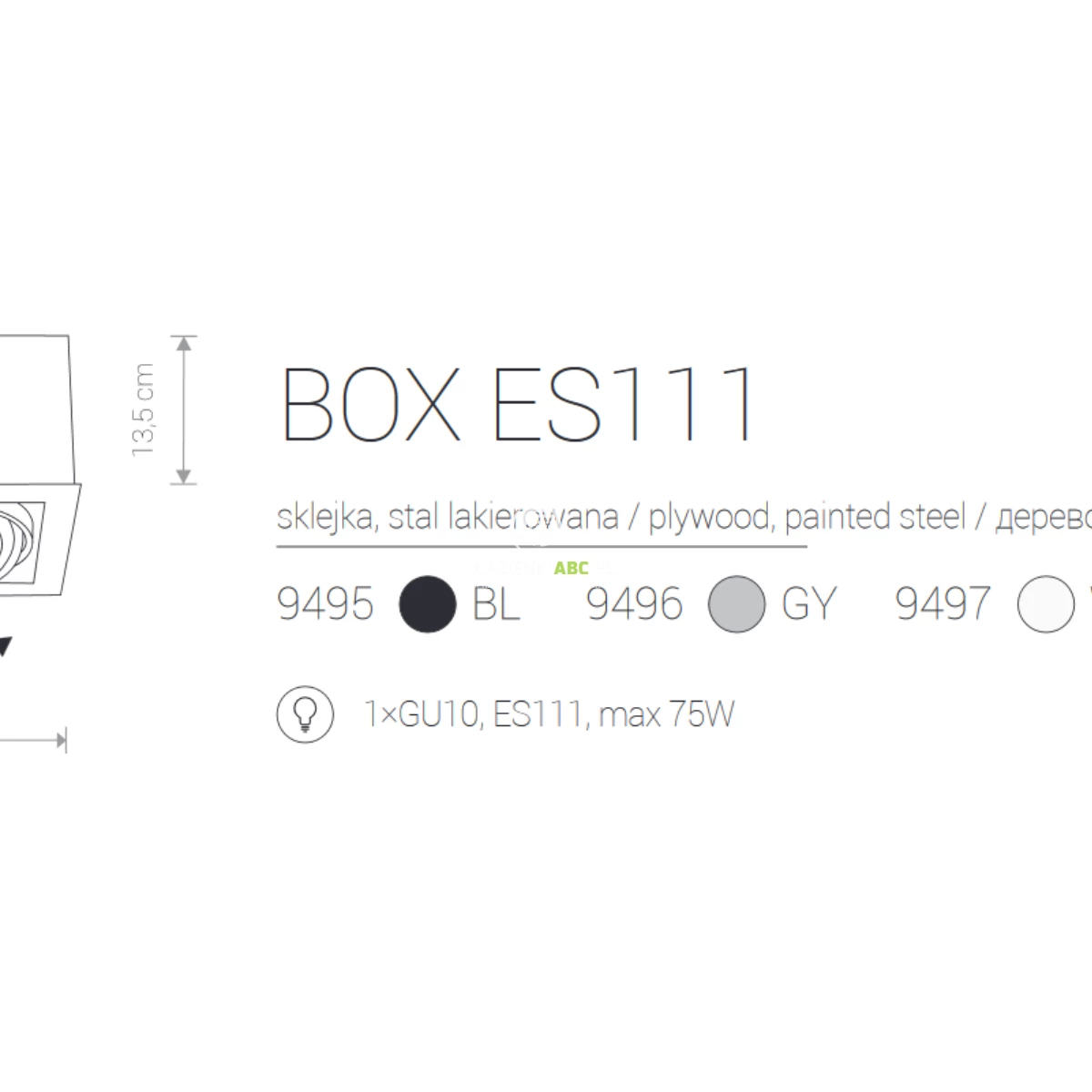 | Moc źródeł światła | max. 75 W |