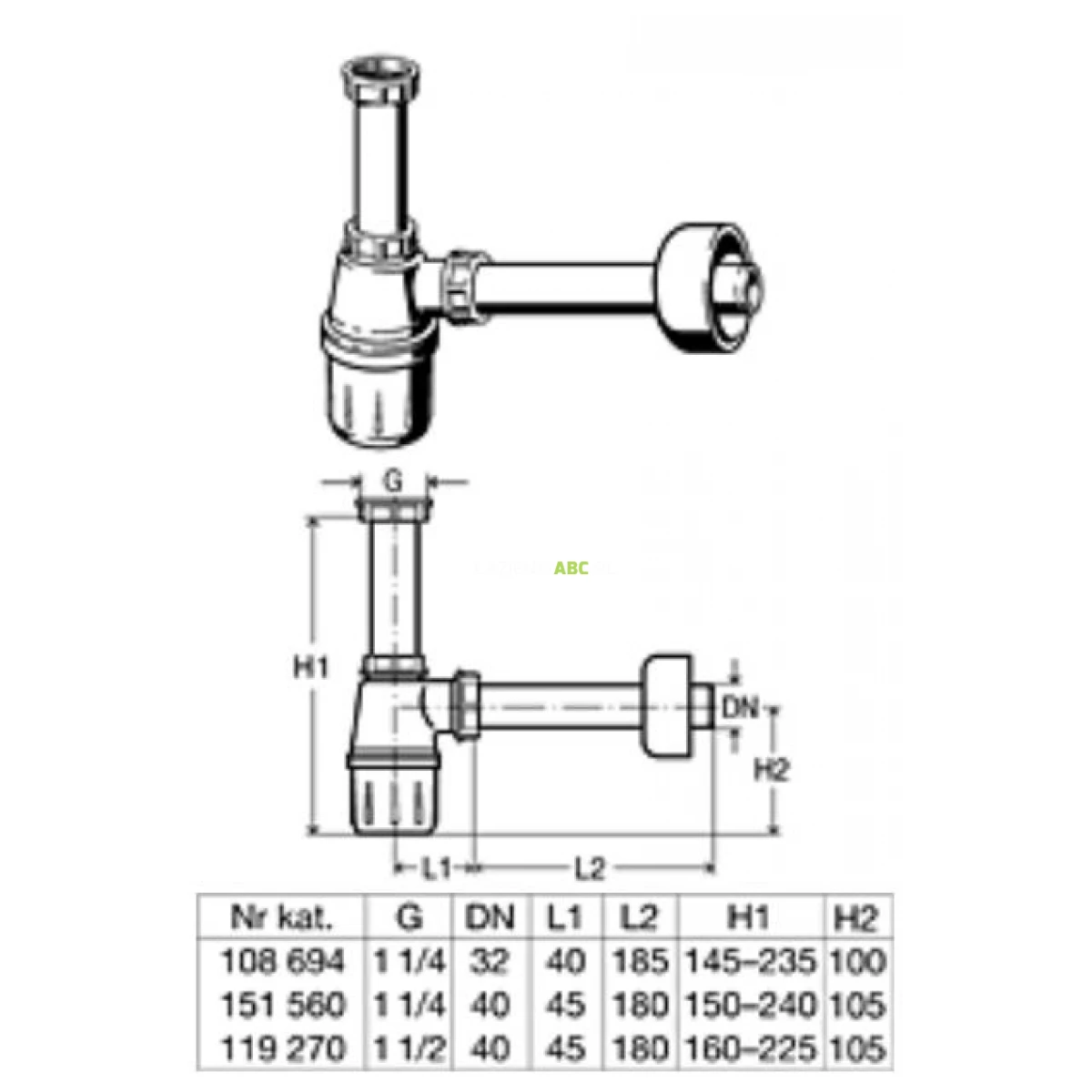 Syfon / półsyfon butelkowy do umywalki / umywalkowy 1 1/4 x 1 1/4 Viega 703219