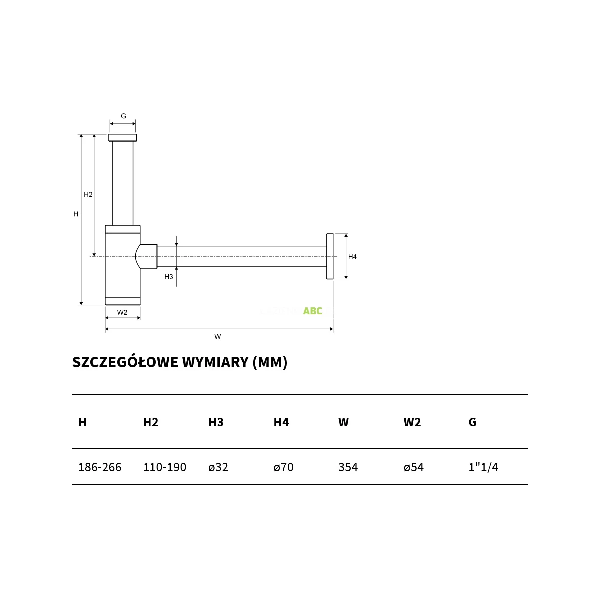 | Średnica odpływu syfonu | 54 mm |