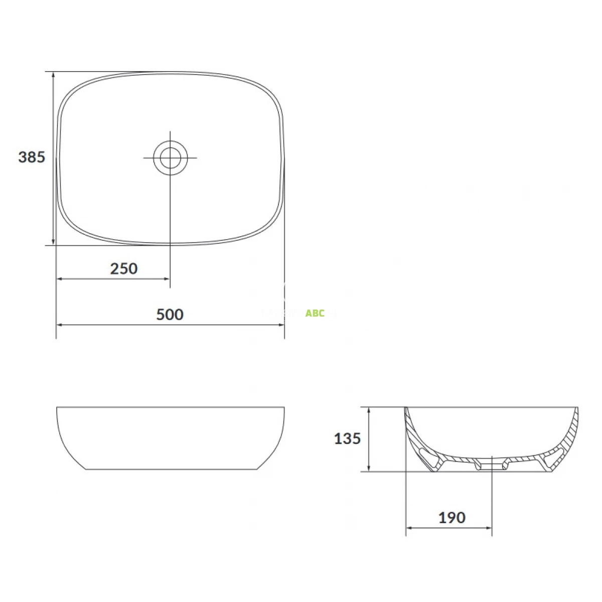 Umywalka nablatowa prostokątna 50x38 Cersanit LARGA K677-013 antracyt mat