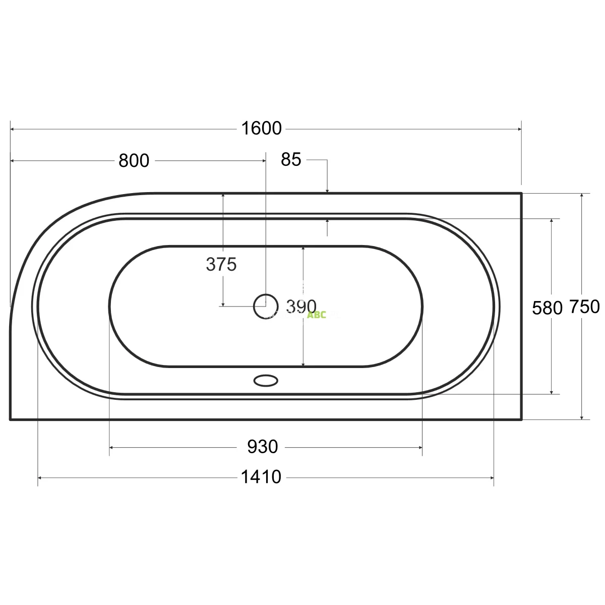 | Odpływ | Na środku |