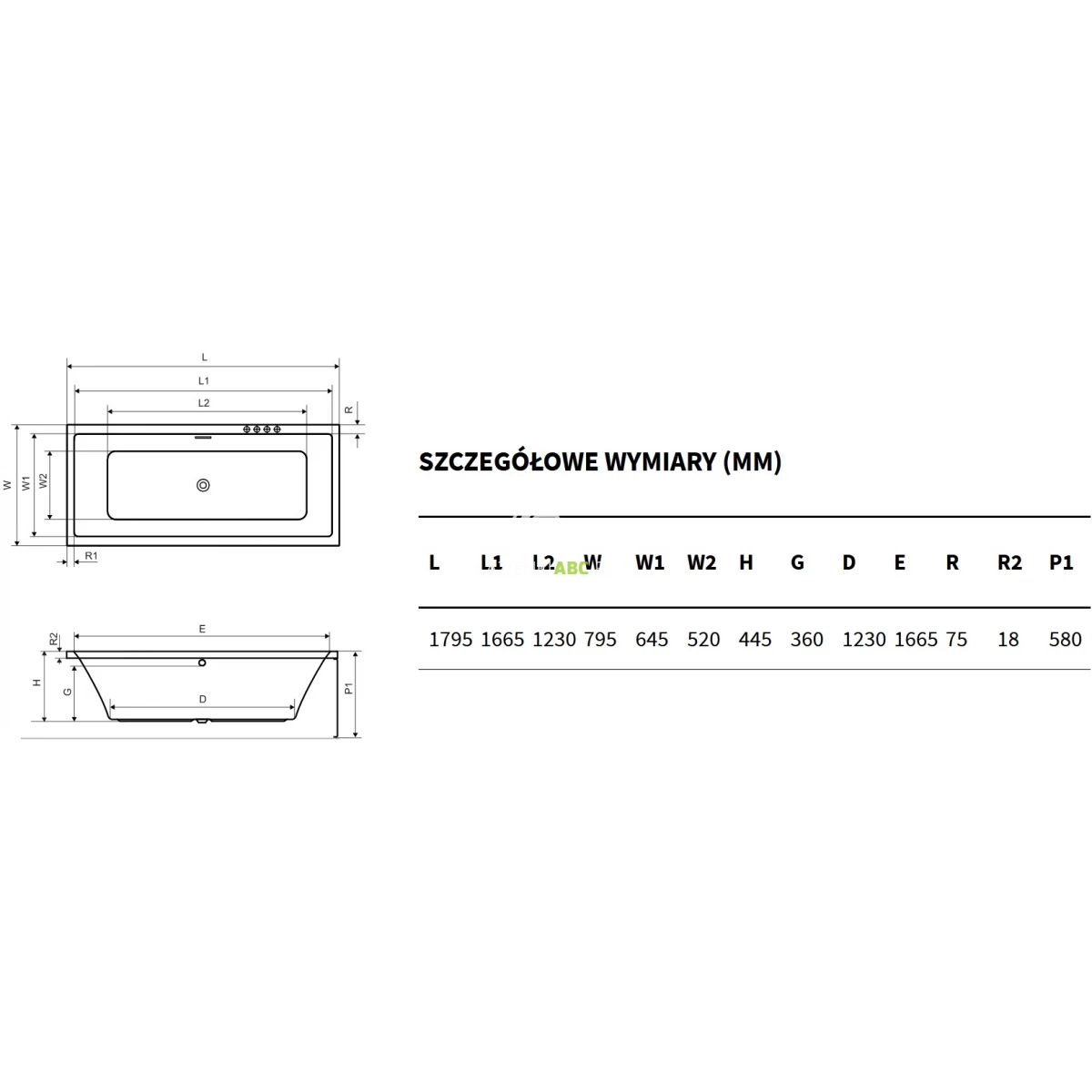 Wanna prostokątna 180x80 Excellent HEAVEN SLIM WAEX.HEV18WHS, ARIN.FLOW.WH przelew biały