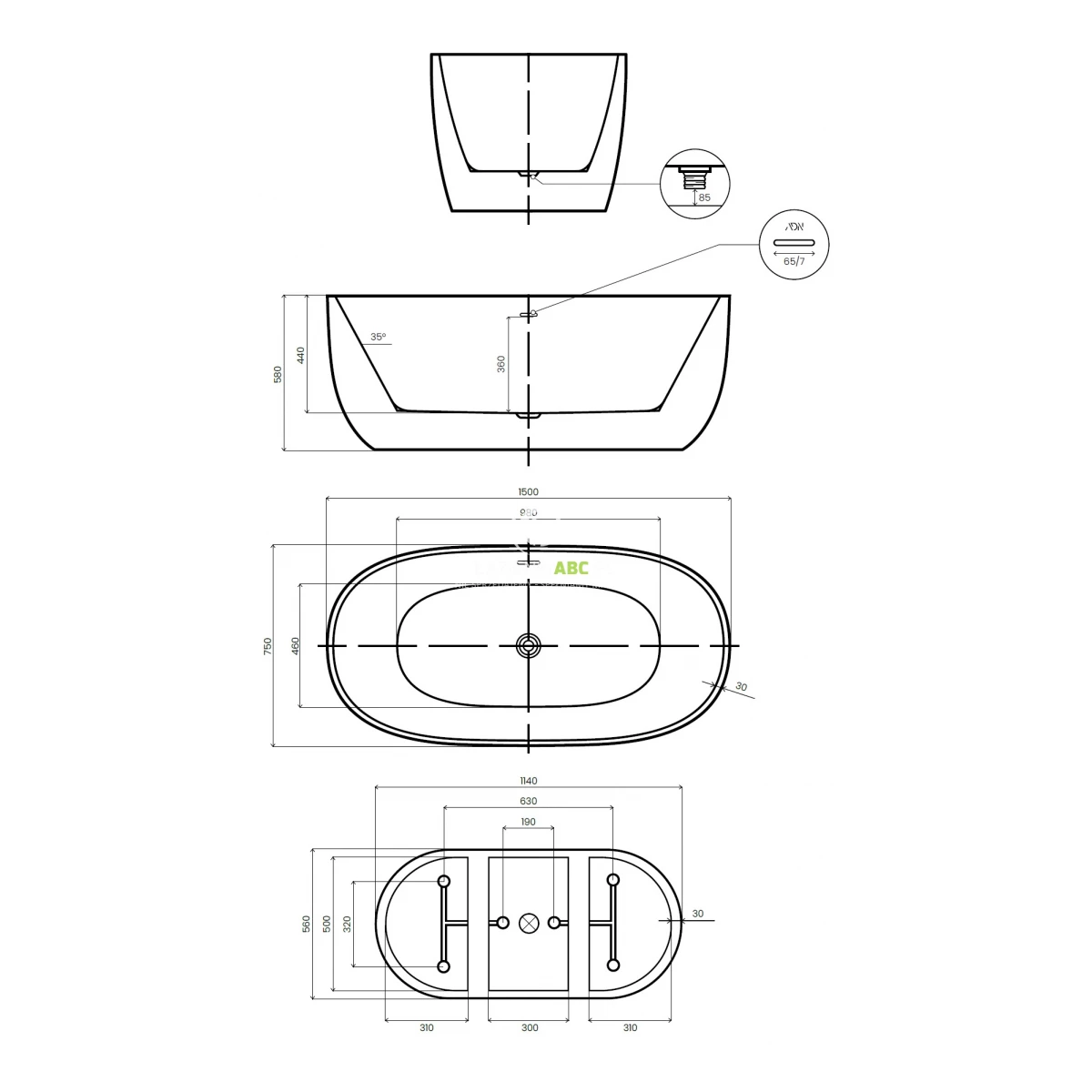 | Odpływ | Na środku |