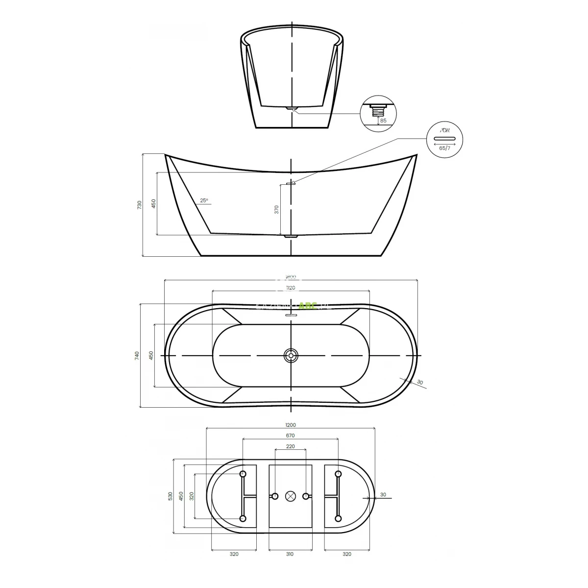 | Odpływ | Na środku |
