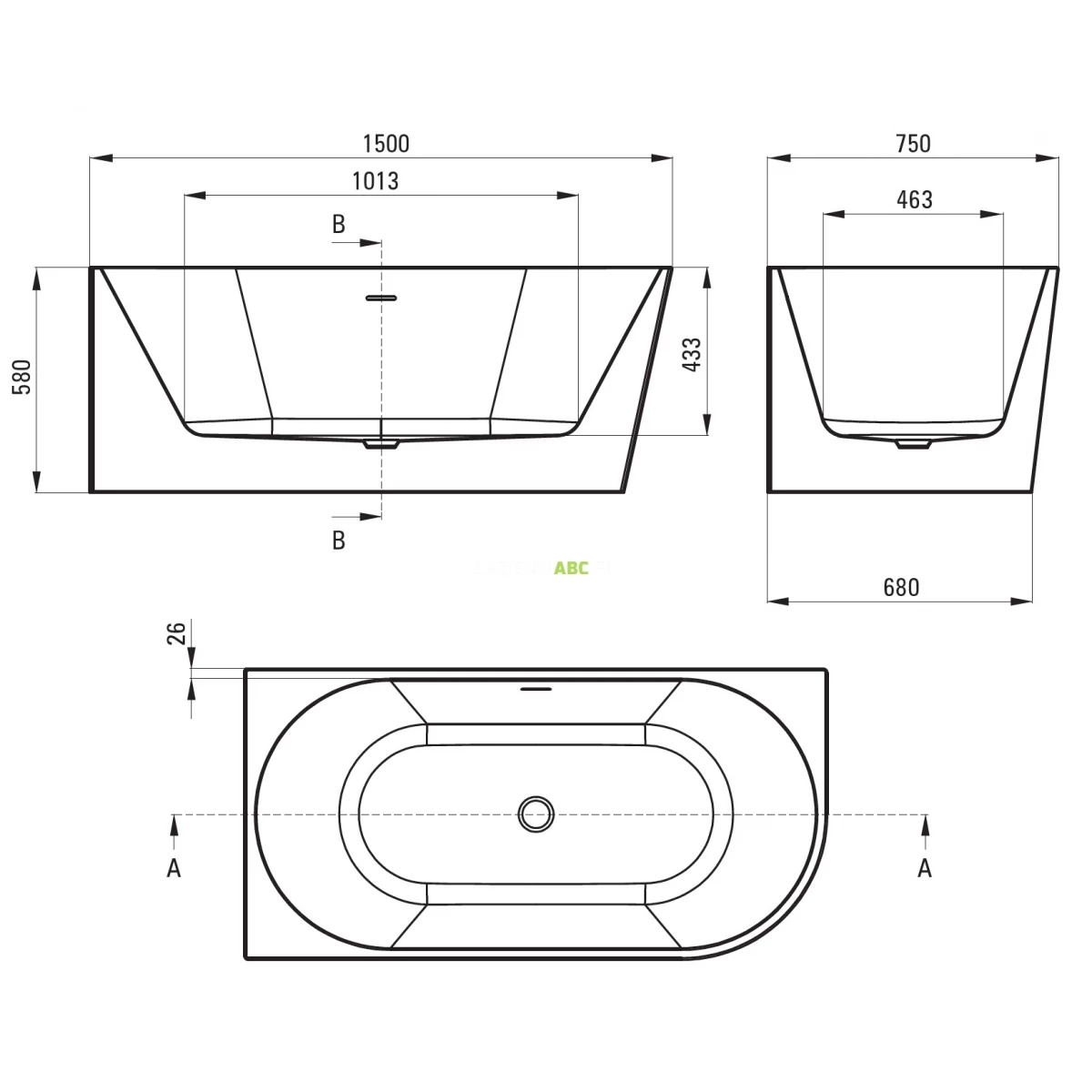 | Dłuższy bok | 150 cm |