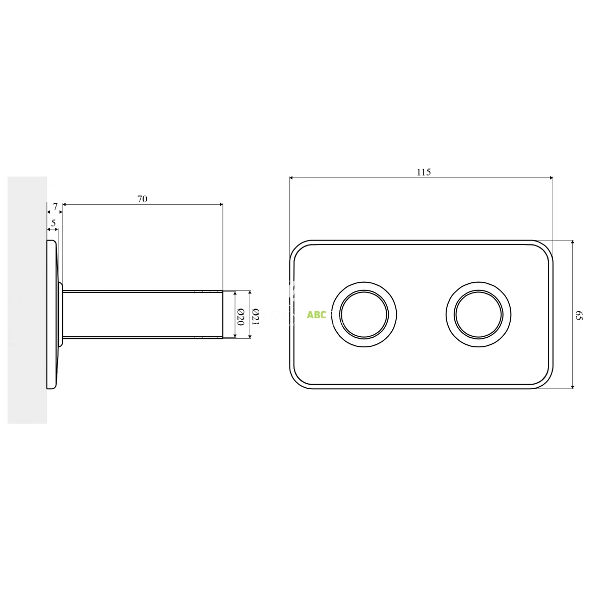 • Zestaw zawiera: 1 x rozeta prostokątna podwójna (otwory 3/4” = 25 mm), 2 x uszczelki silikonowe, 2 x tuleja maskująca 70 mm