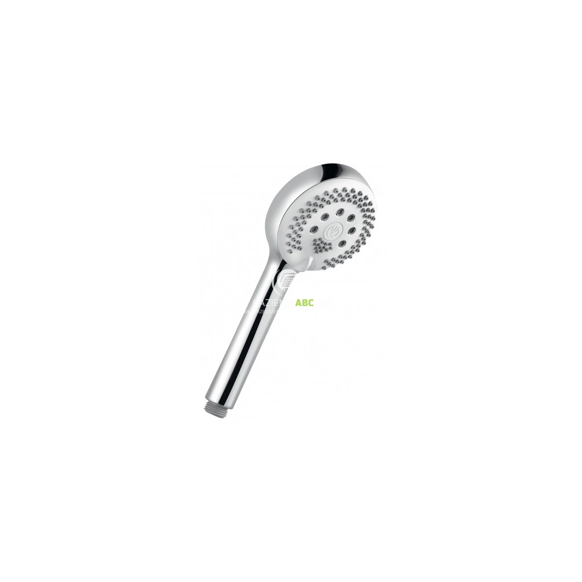 Trzystrumieniowa rączka natrysku, która w zależności od ustawień oferuje strumień deszczowy, miękki lub masujący. Możliwość zmiany strumienia za pomocą ergonomicznego przełącznika lub poprzez obrót tarczy.