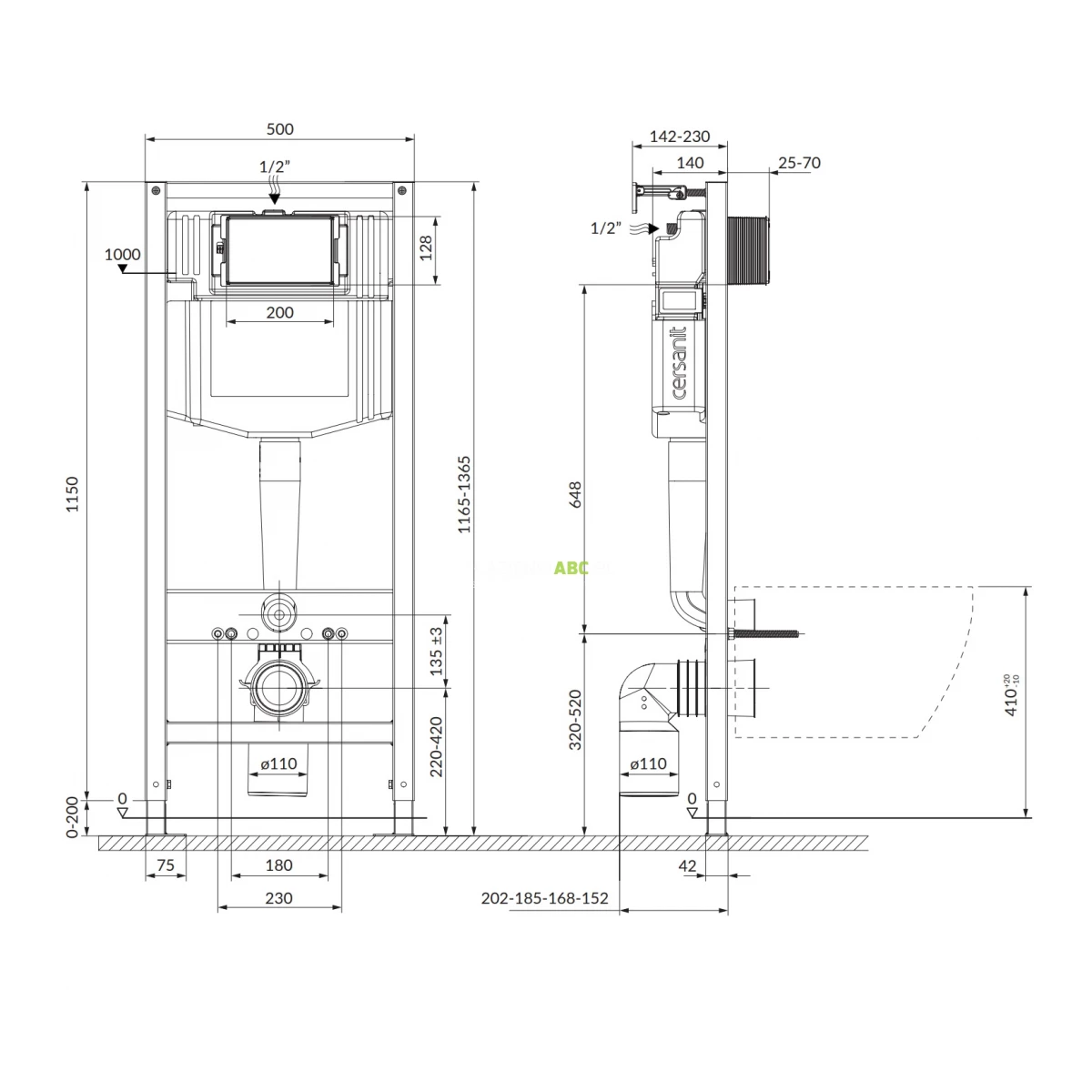 | Wysokość stelaża | 1150 mm |