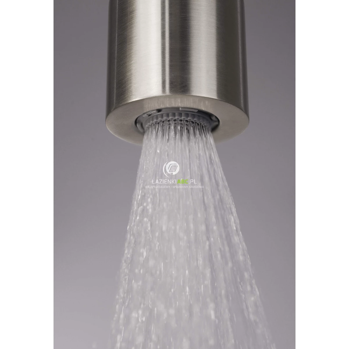Niewielka głowica prysznica wytwarza stożkowy strumień o optymalnej intensywności. Można go używać do relaksującego masażu, a spłukanie długich włosów zajmuje tylko chwilę. Pomimo swojej małej wielkości, głowica jest niezwykle trwała i łatwa do utrzymania w czystości w porównaniu do tradycyjnych rozwiązań.