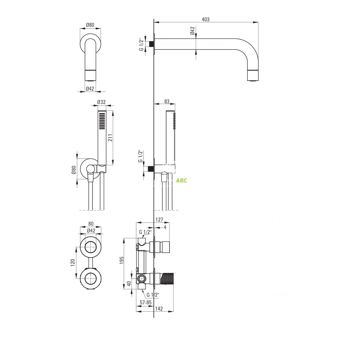 | Zestaw natryskowy | Z uchwytem punktowym |