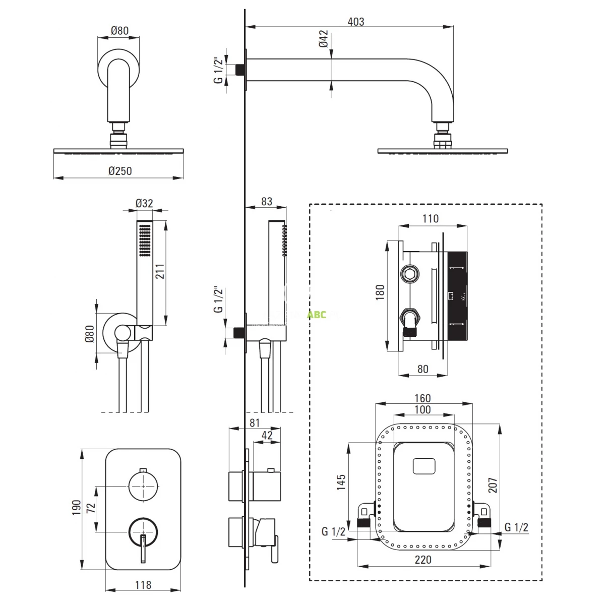 | Typ | Zestaw podtynkowy kompletny |
