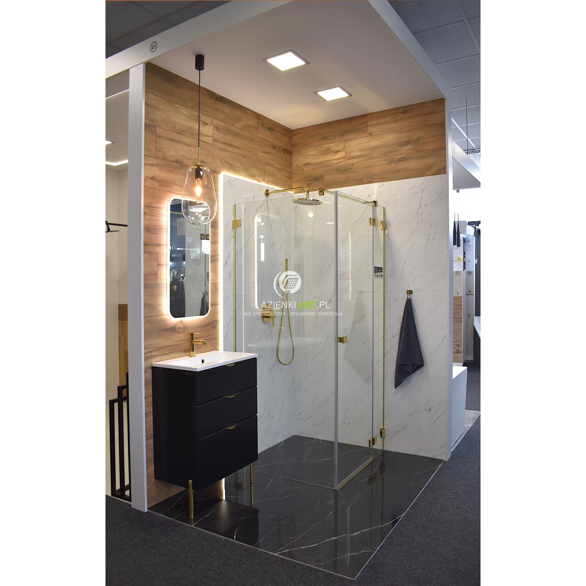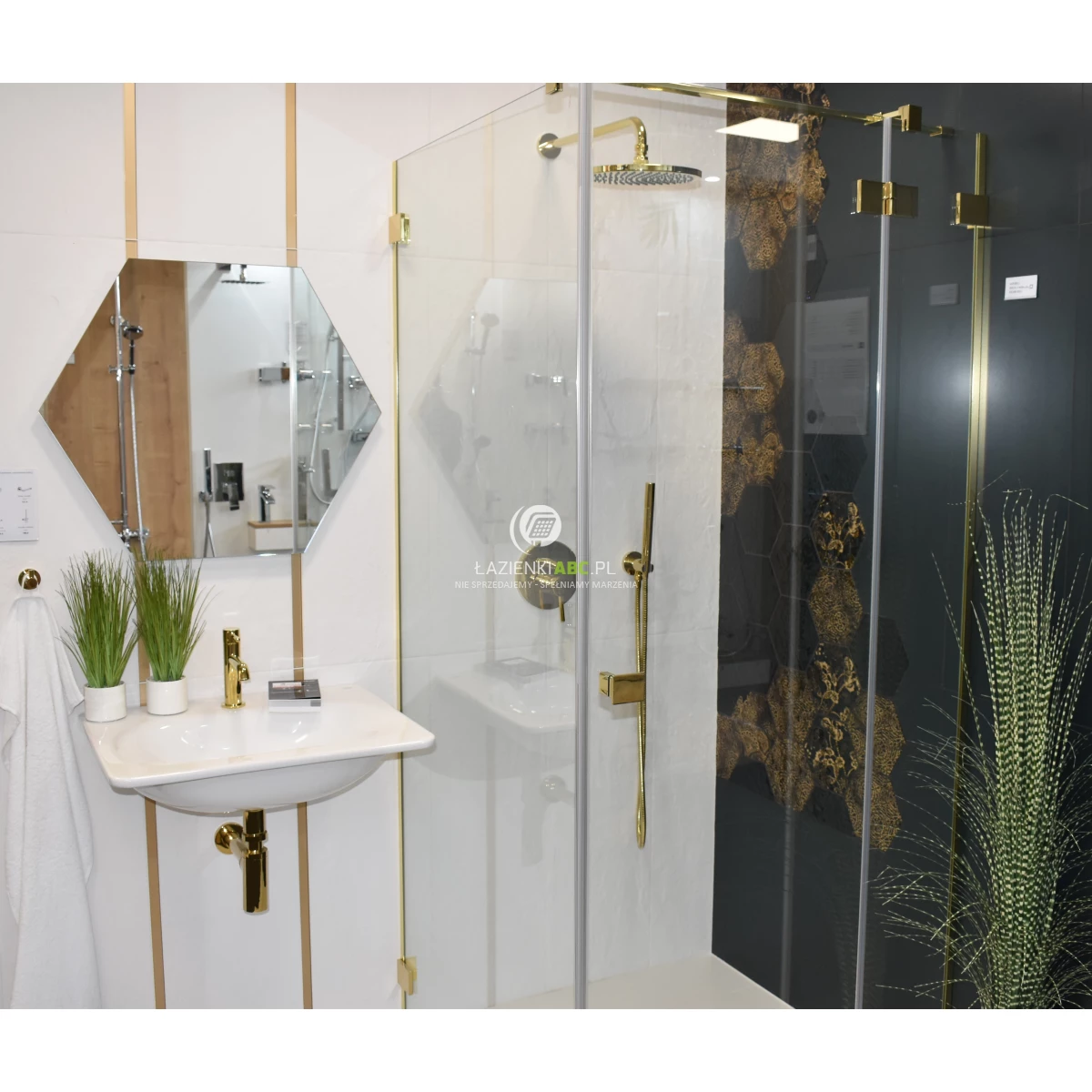 Piękny, nowoczesny zestaw, świetnie prezentuje się w łazience w złotej kabinie. Bardzo łatwy w czyszczeniu. Polecam.