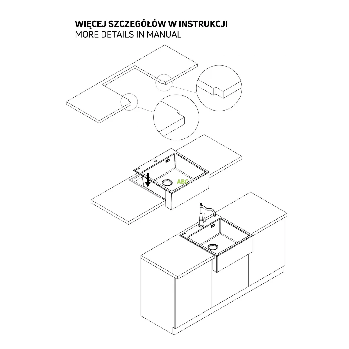Oprócz standardowego otworu pod baterię zlewozmywak Deante ma specjalnie podfrezowane otwory, które przydadzą się, jeśli zechcesz zainstalować dozownik płynu do mycia naczyń lub automatycny korek. Wystarczy pogłębić przygotowane podfrezowanie przy pomocy otwornicy.