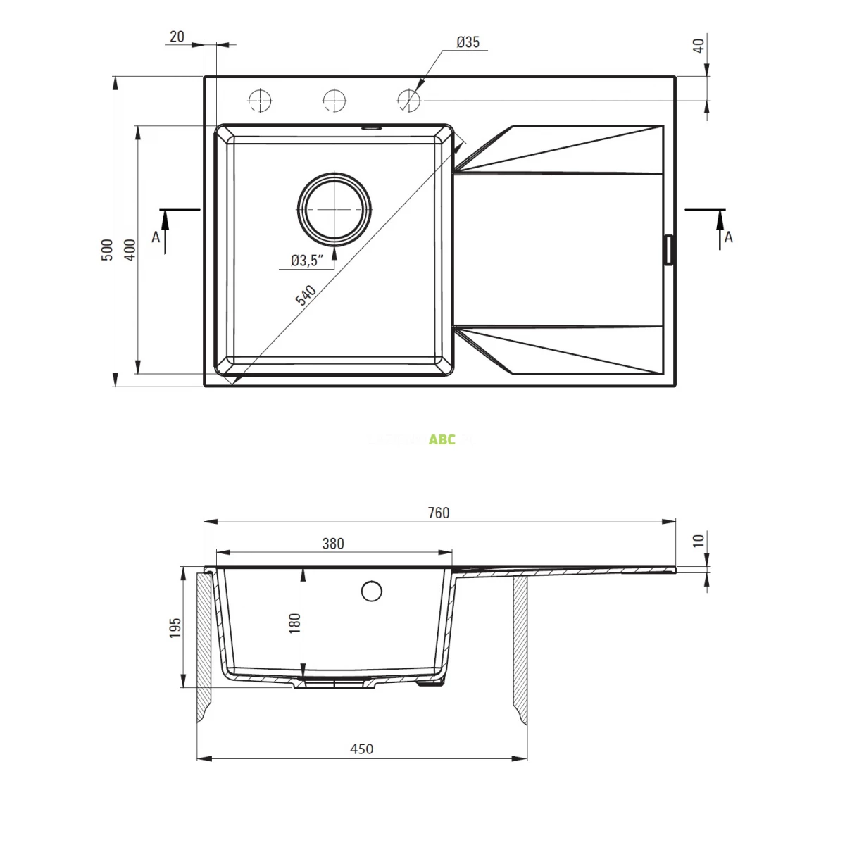 | Odpływ | 3 1/2 |