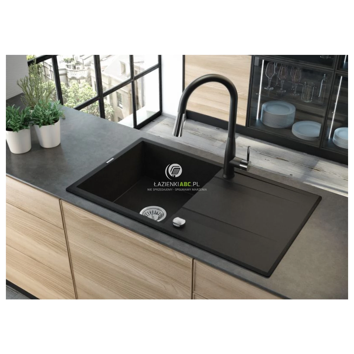 To elegancki i funkcjonalny dodatek do granitowego zlewozmywaka. Dzięki gustownemu przyciskowi można łatwo zamknąć lub otworzyć przepływ wody jednym ruchem palca.